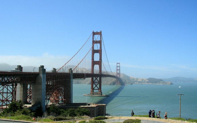 沿海边一路来到金门大桥,这是一座在美国电影中出镜率非常高的地标性建筑。可以在桥基和桥上多角度欣赏大桥的风姿,虽80高龄仍魏然屹立,其特色的橘红色依然那么醒目和出彩。其在美国和全世界人民心中的价值是无法比拟的,这一抹橘色飞虹成为美国的象征之一。