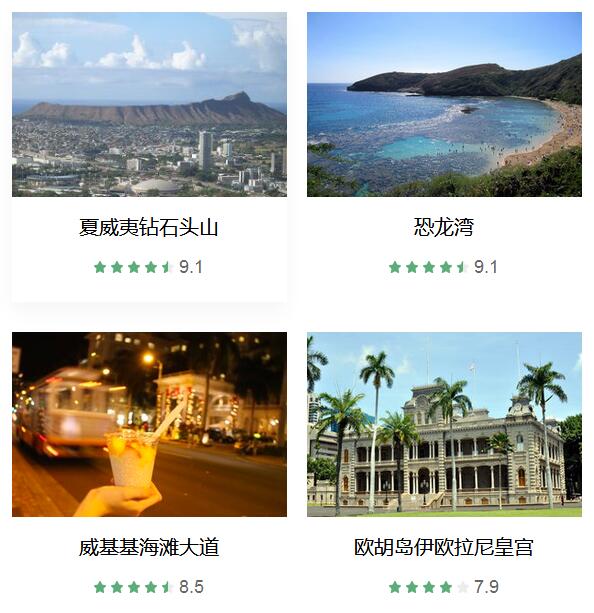 威基基海滩 、 美国海军亚利桑那号战列舰纪念馆 、 夏威夷钻石头山 、 恐龙湾 、 密苏里号战舰纪念馆 、 夏威夷珍珠港 、 威基基海滩大道 、 欧胡岛伊欧拉尼皇宫 、 夏威夷火山国家...