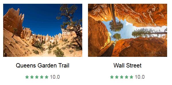 布莱斯竞技场 、 布莱斯点 、 布莱斯峡谷国家公园游客中心 、 日落点 、 日出点 、 灵感点 、 天然桥 、 Navajo Loop Trail 、 望远点 、 彩虹点和佑维帕点 、 帕里亚观景台 、 童话境点